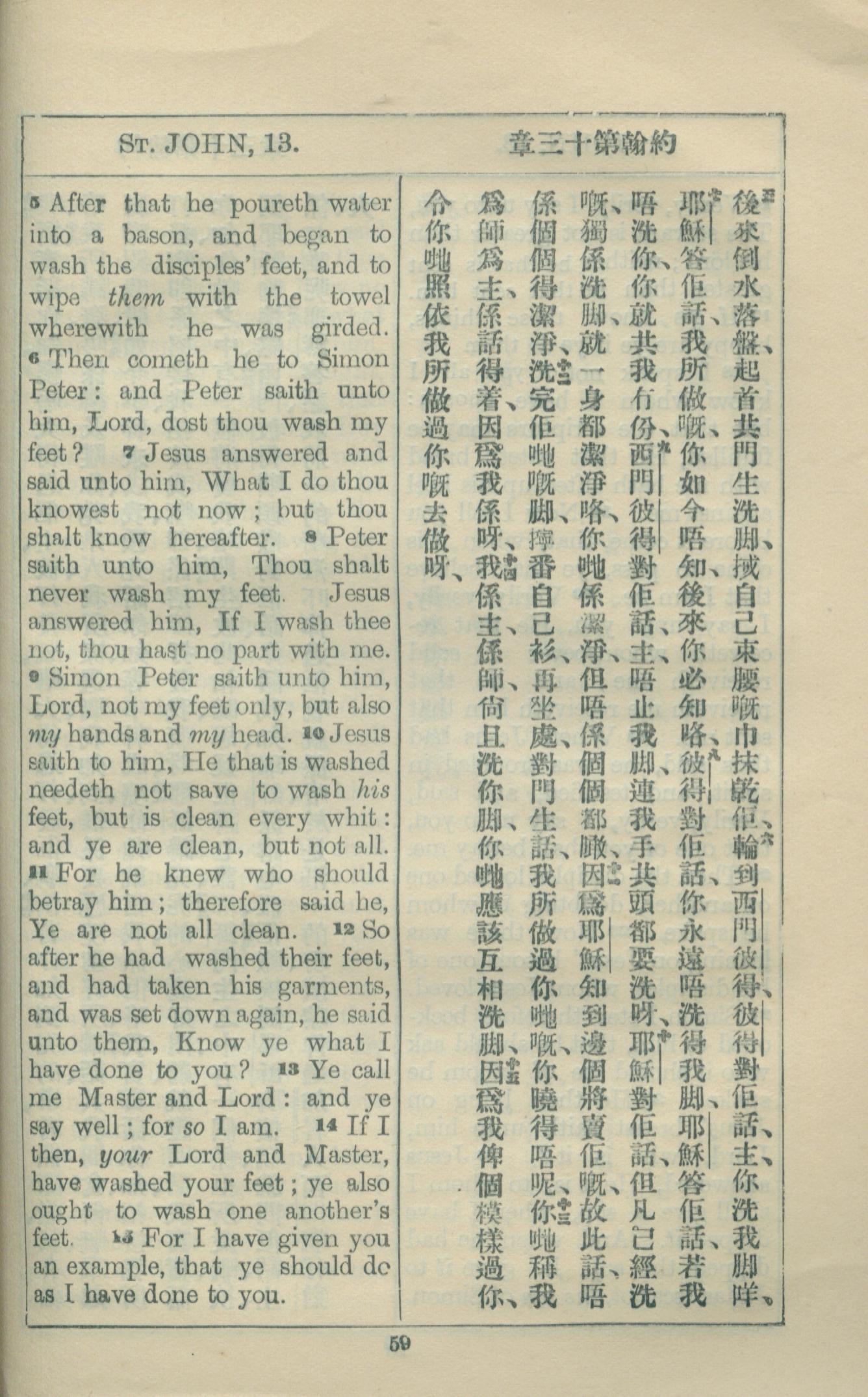 1927年約翰福音中西字 約翰福音 13 章 5 節到 13 章 15 節