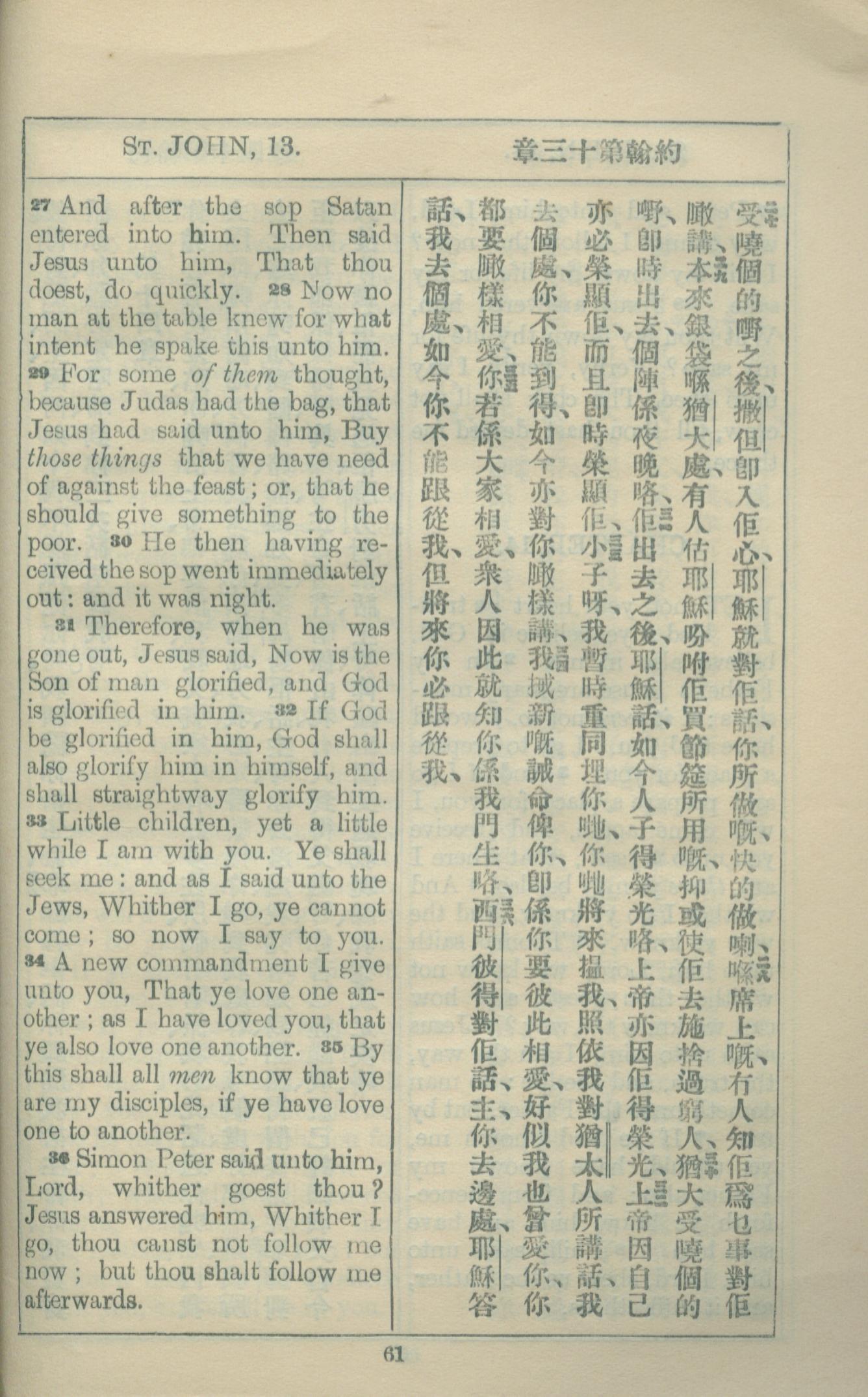 1927年約翰福音中西字 約翰福音 13 章 27 節到 13 章 36 節