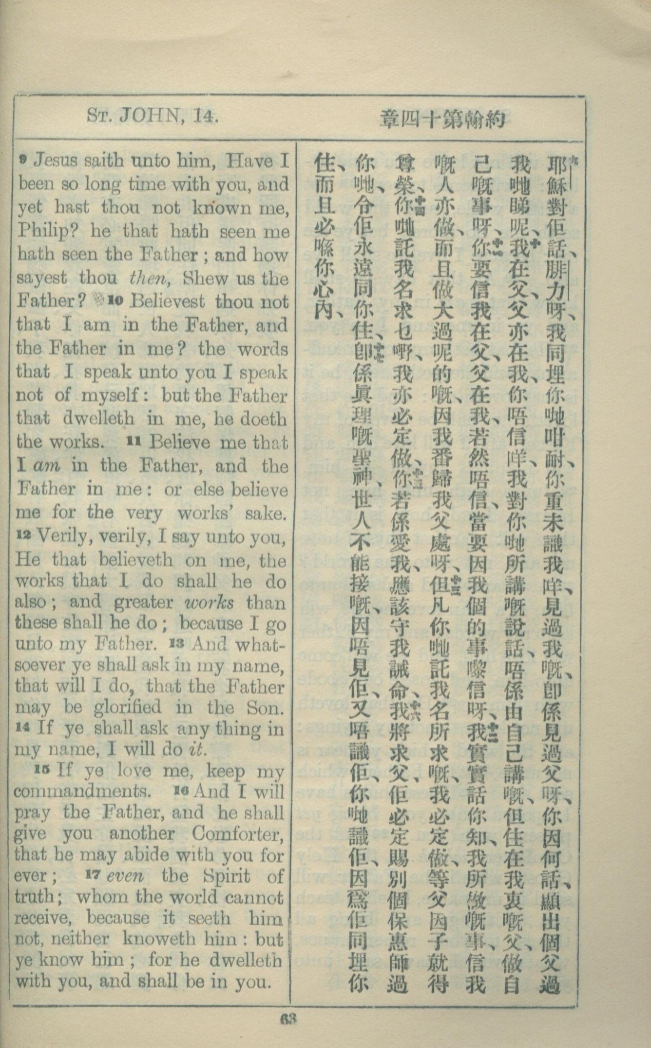 1927年約翰福音中西字 約翰福音 14 章 9 節到 14 章 17 節