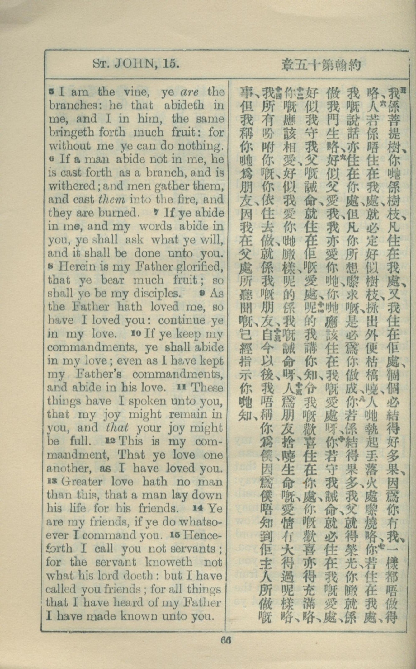 1927年約翰福音中西字 約翰福音 15 章 5 節到 15 章 15 節