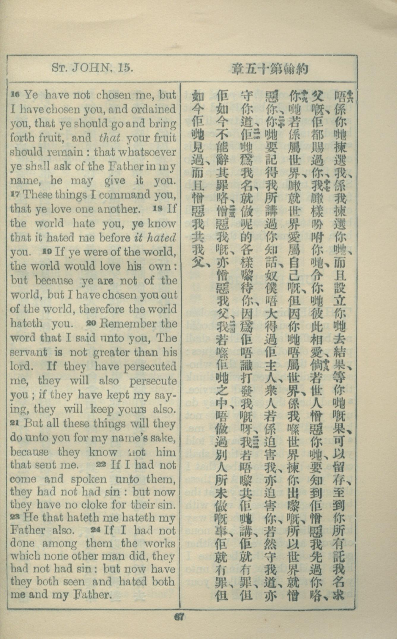 1927年約翰福音中西字 約翰福音 15 章 16 節到 15 章 24 節
