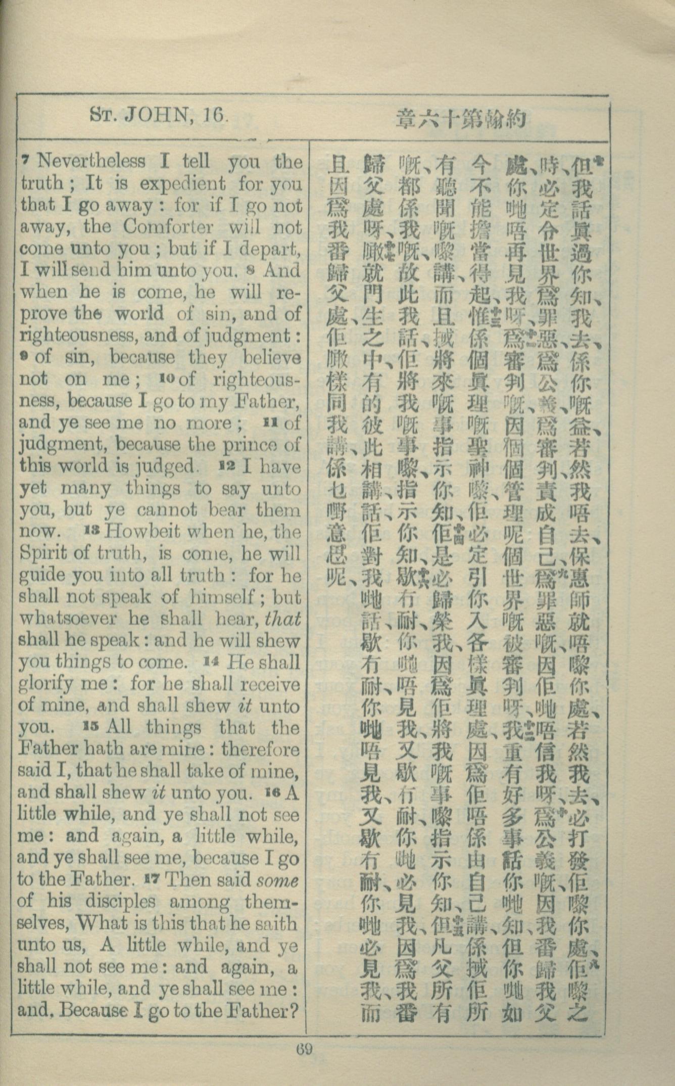 1927年約翰福音中西字 約翰福音 16 章 7 節到 16 章 17 節