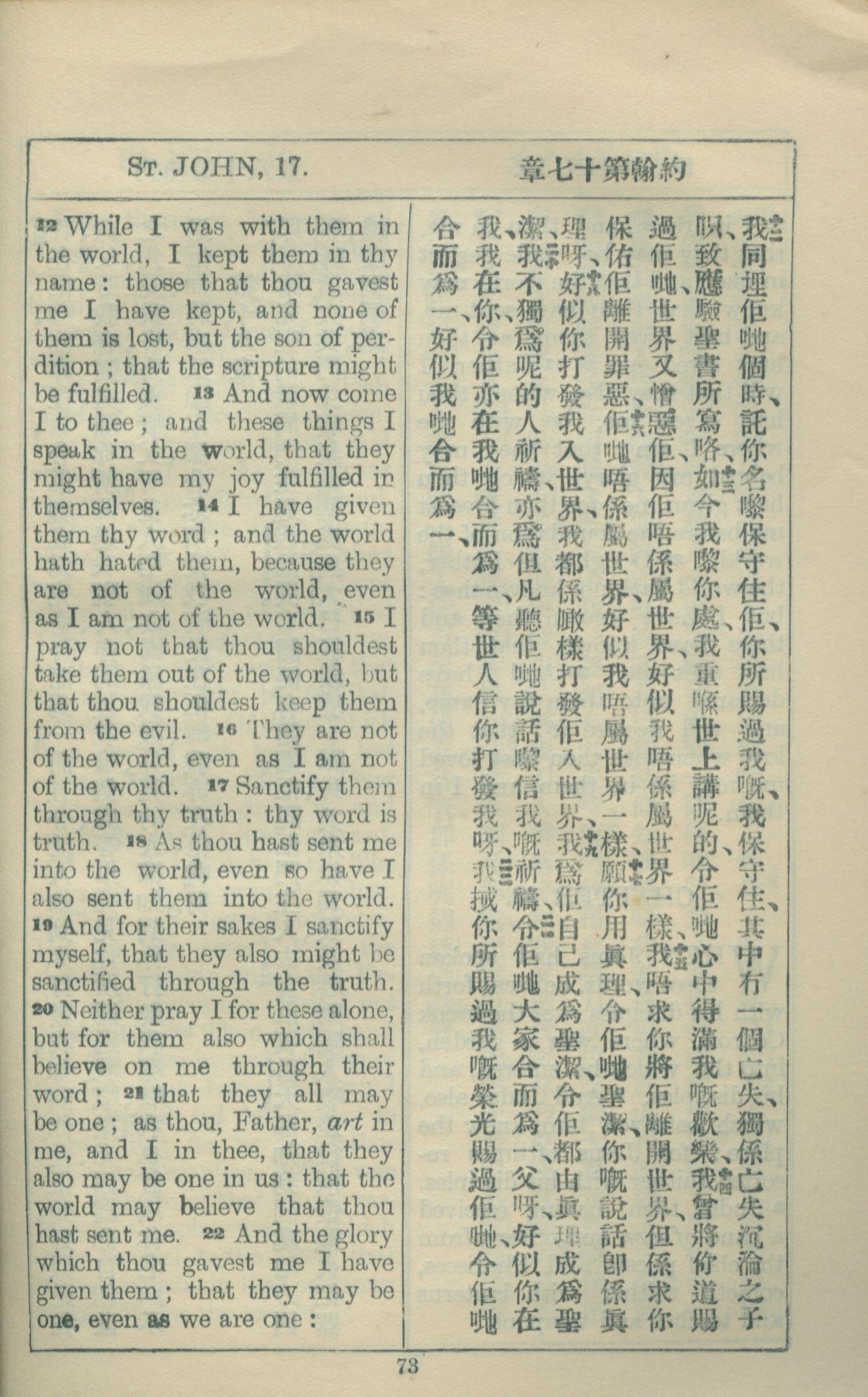 1927年約翰福音中西字 約翰福音 17 章 12 節到 17 章 22 節