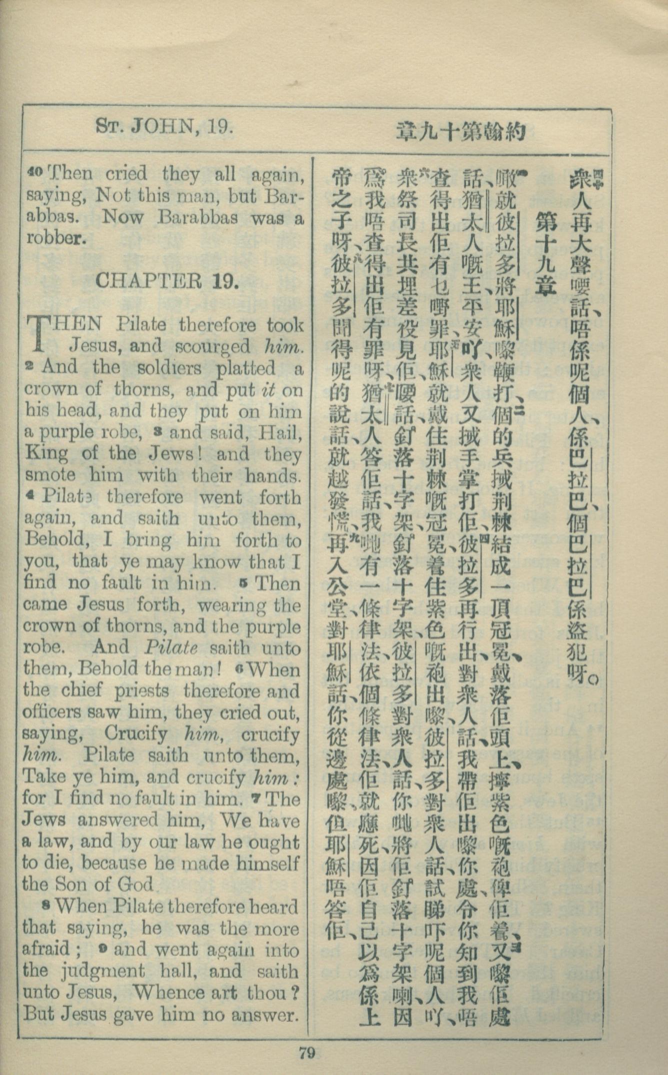 1927年約翰福音中西字 約翰福音 18 章 40 節到 19 章 9 節
