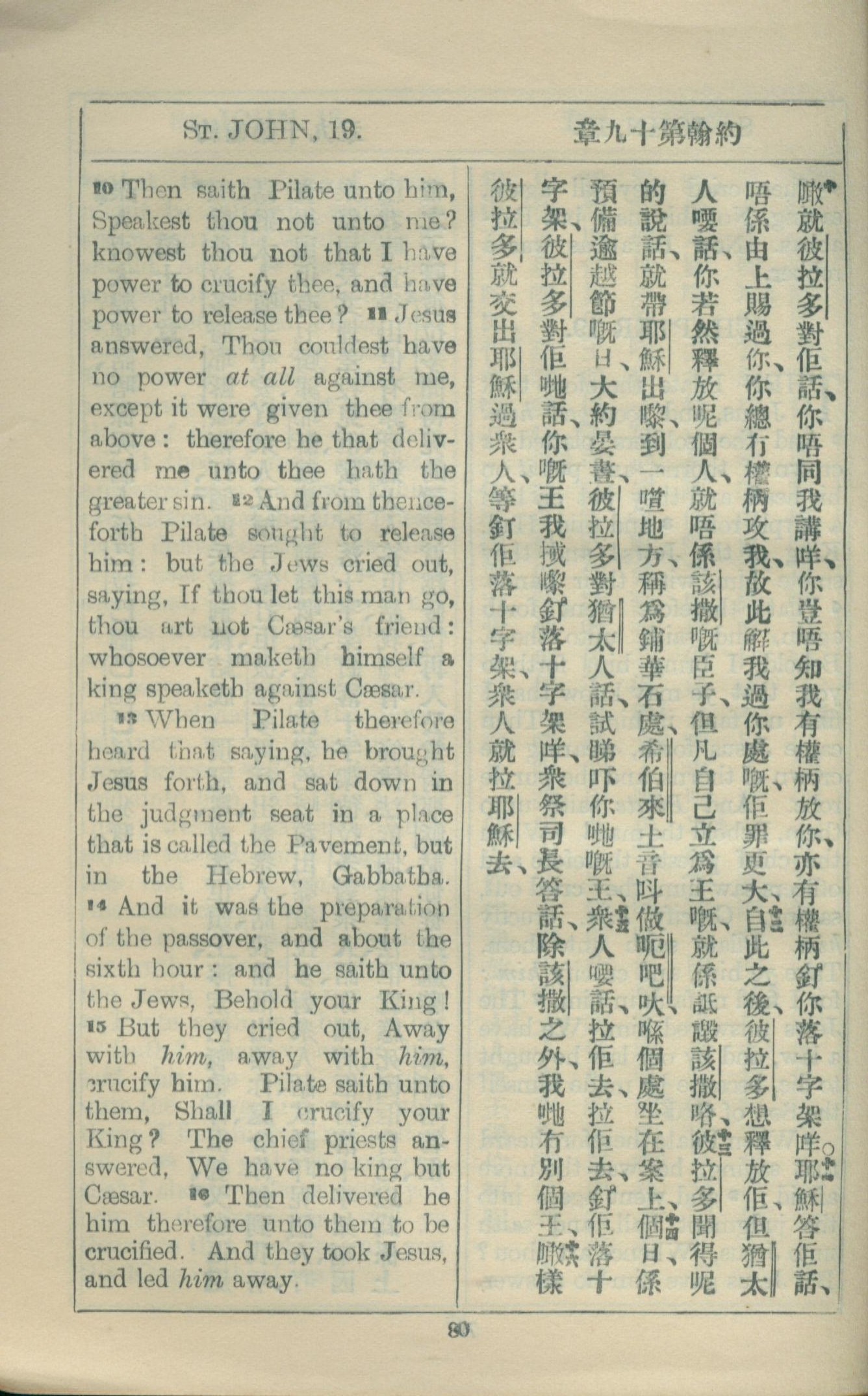 1927年約翰福音中西字 約翰福音 19 章 10 節到 19 章 16 節