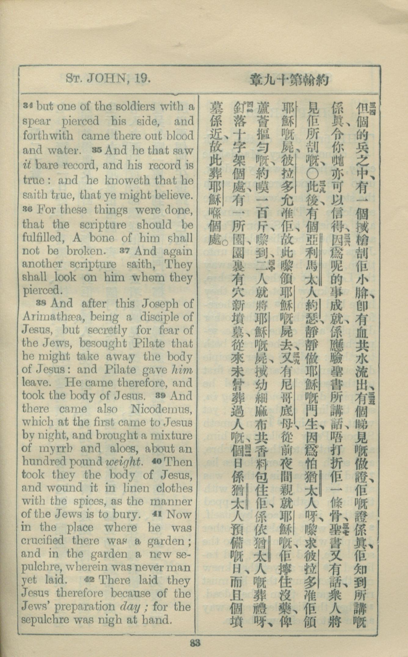 1927年約翰福音中西字 約翰福音 19 章 34 節到 19 章 42 節