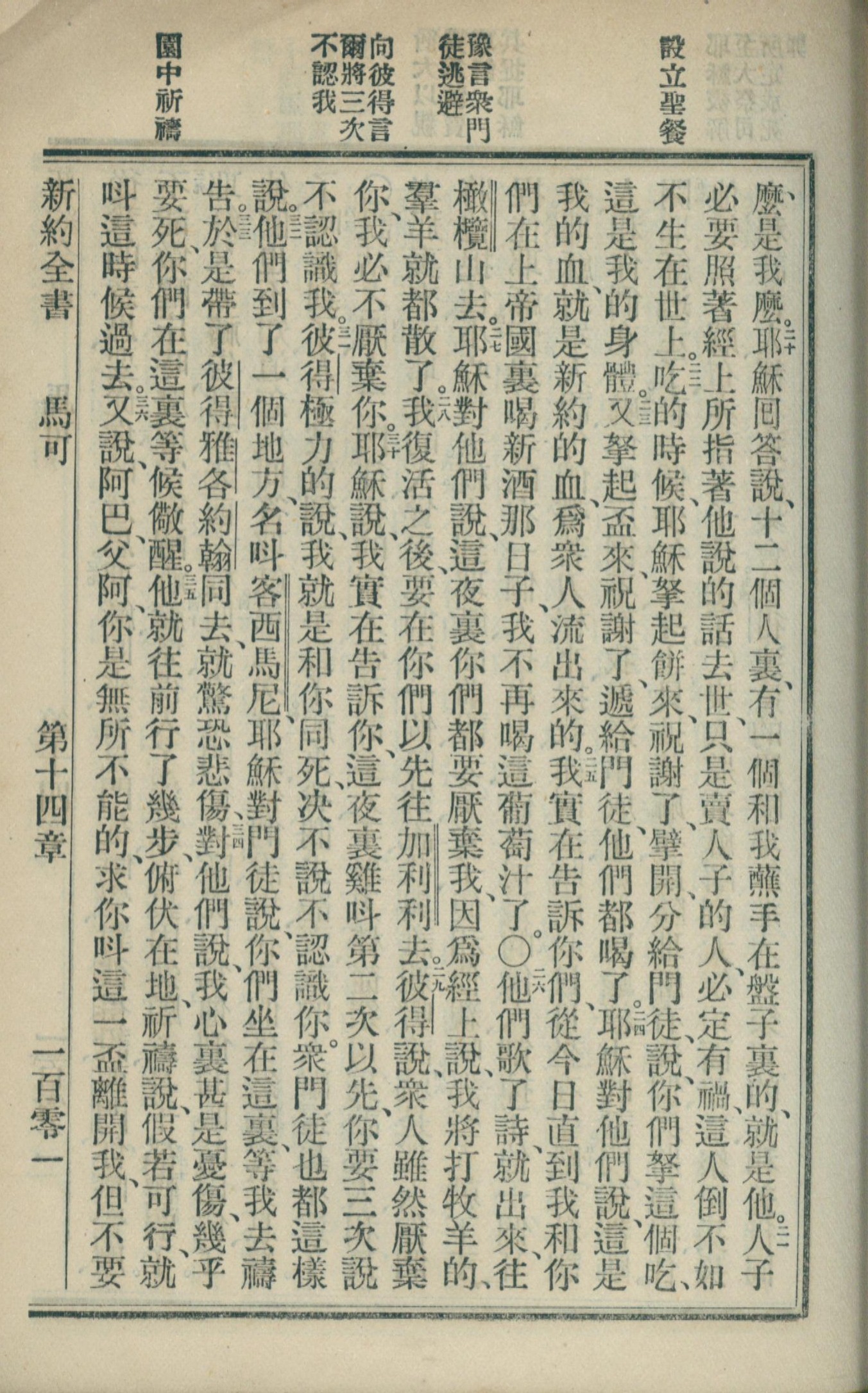 1902年新約全書 馬可福音 14 章 20 節到 14 章 36 節