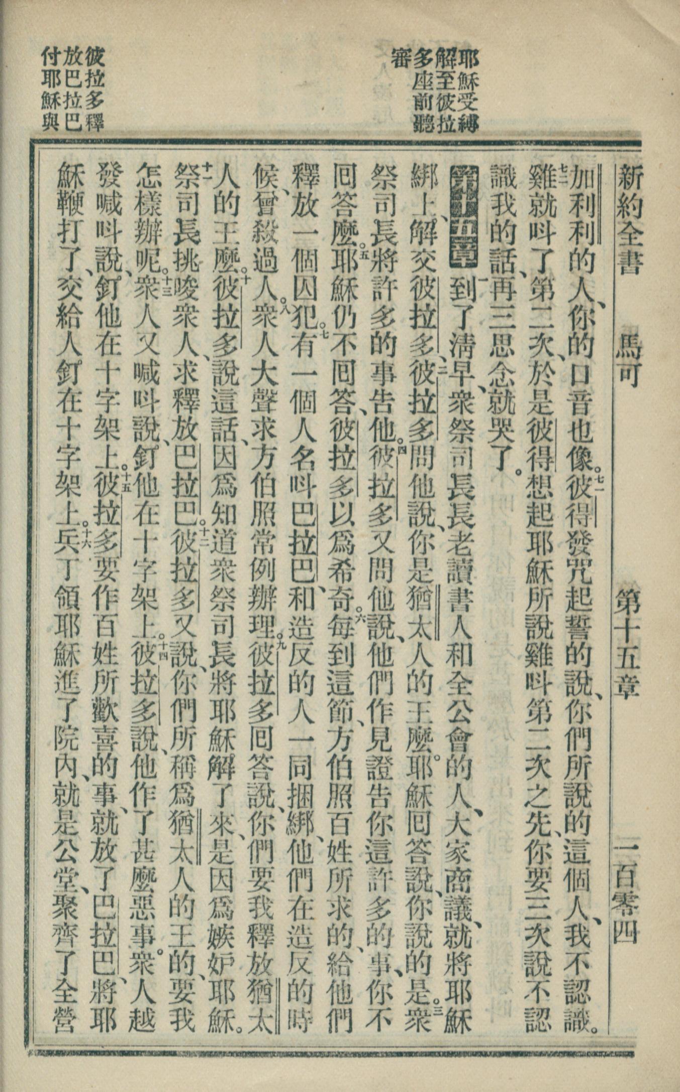 1902年新約全書 馬可福音 14 章 71 節到 15 章 16 節