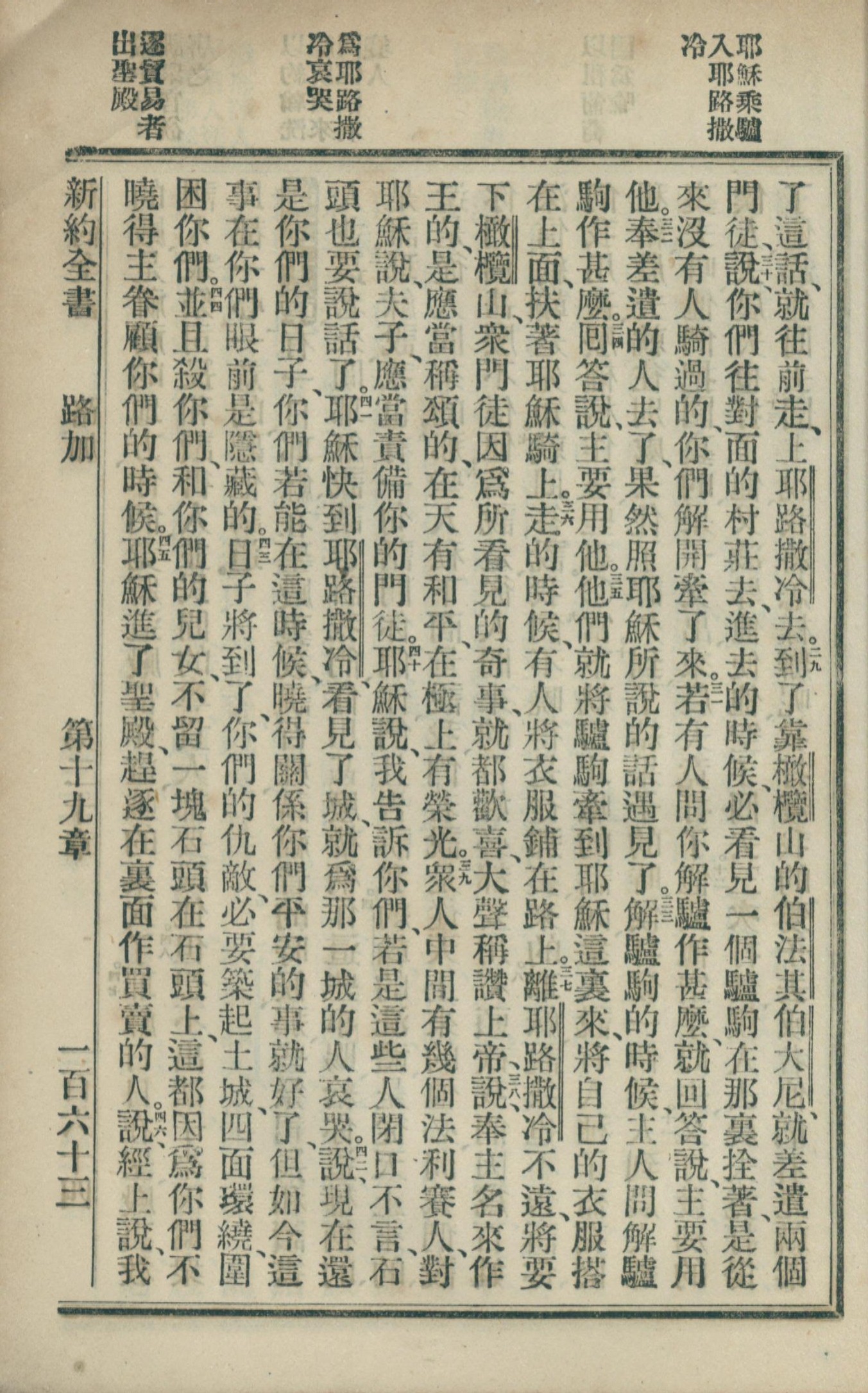 1902年新約全書 路加福音 19 章 28 節到 19 章 46 節