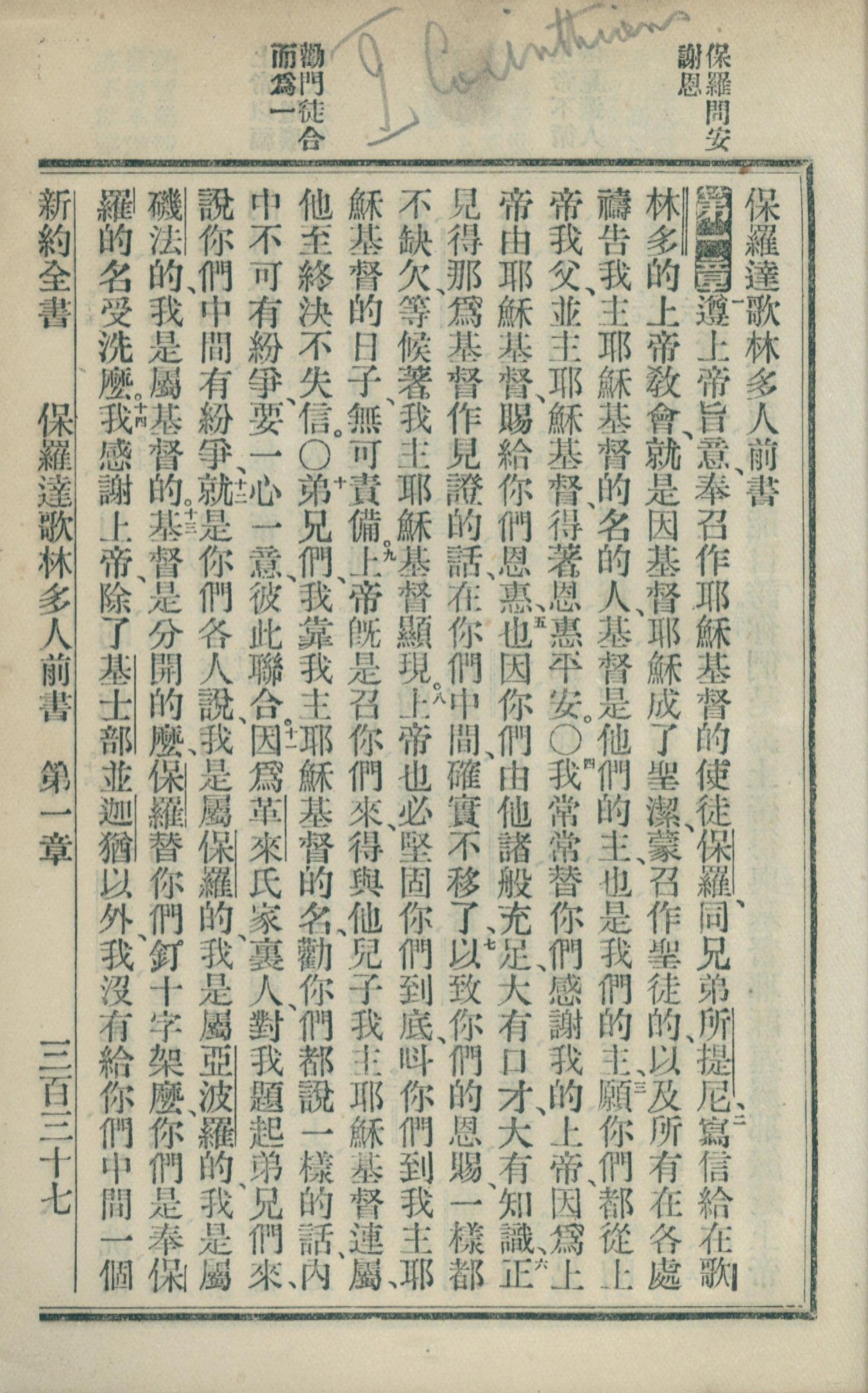 1902年新約全書 哥林多前書 1 章 1 節到 1 章 14 節