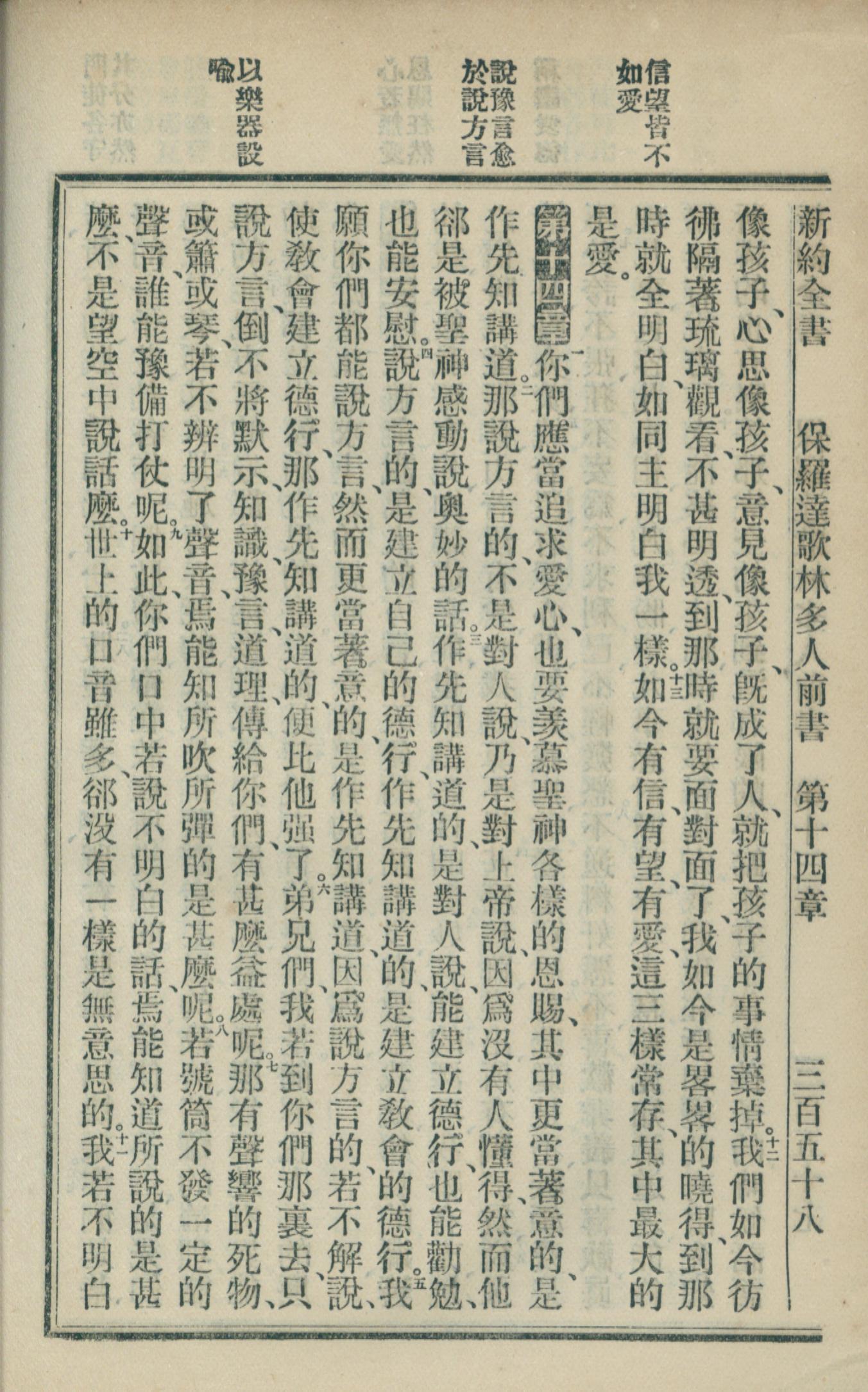 1902年新約全書 哥林多前書 13 章 12 節到 14 章 11 節
