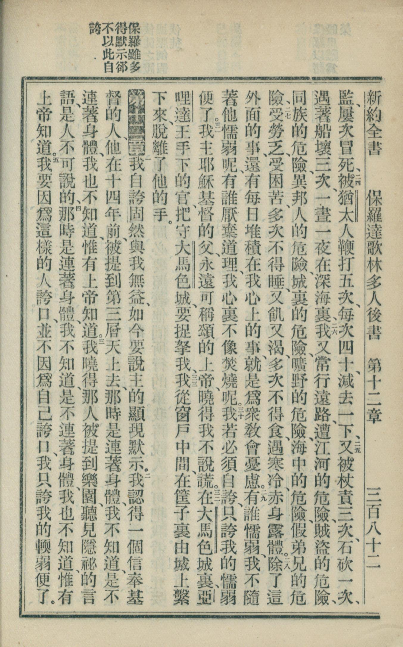 1902年新約全書 哥林多後書 11 章 24 節到 12 章 5 節