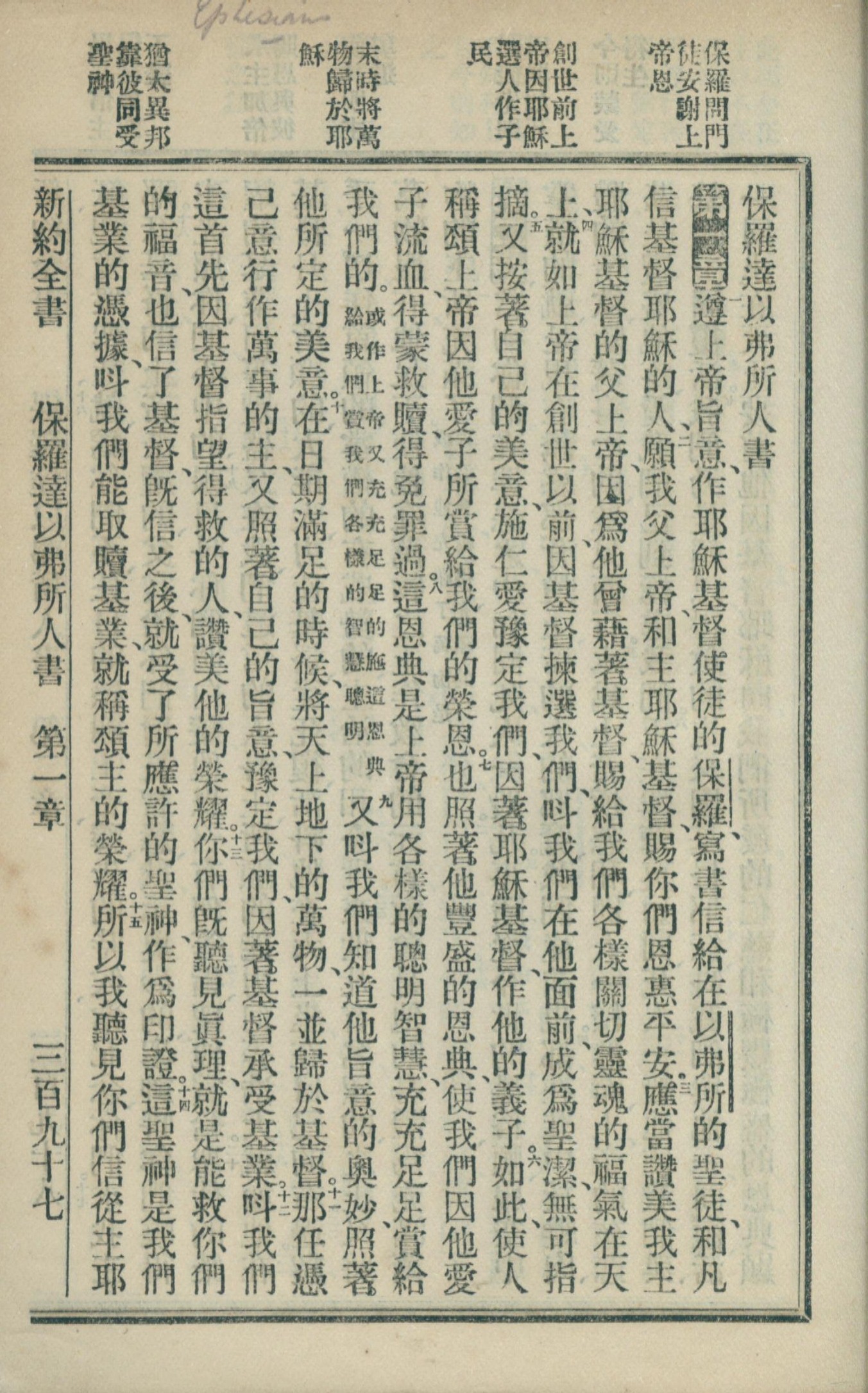 1902年新約全書 以弗所書 1 章 1 節到 1 章 15 節