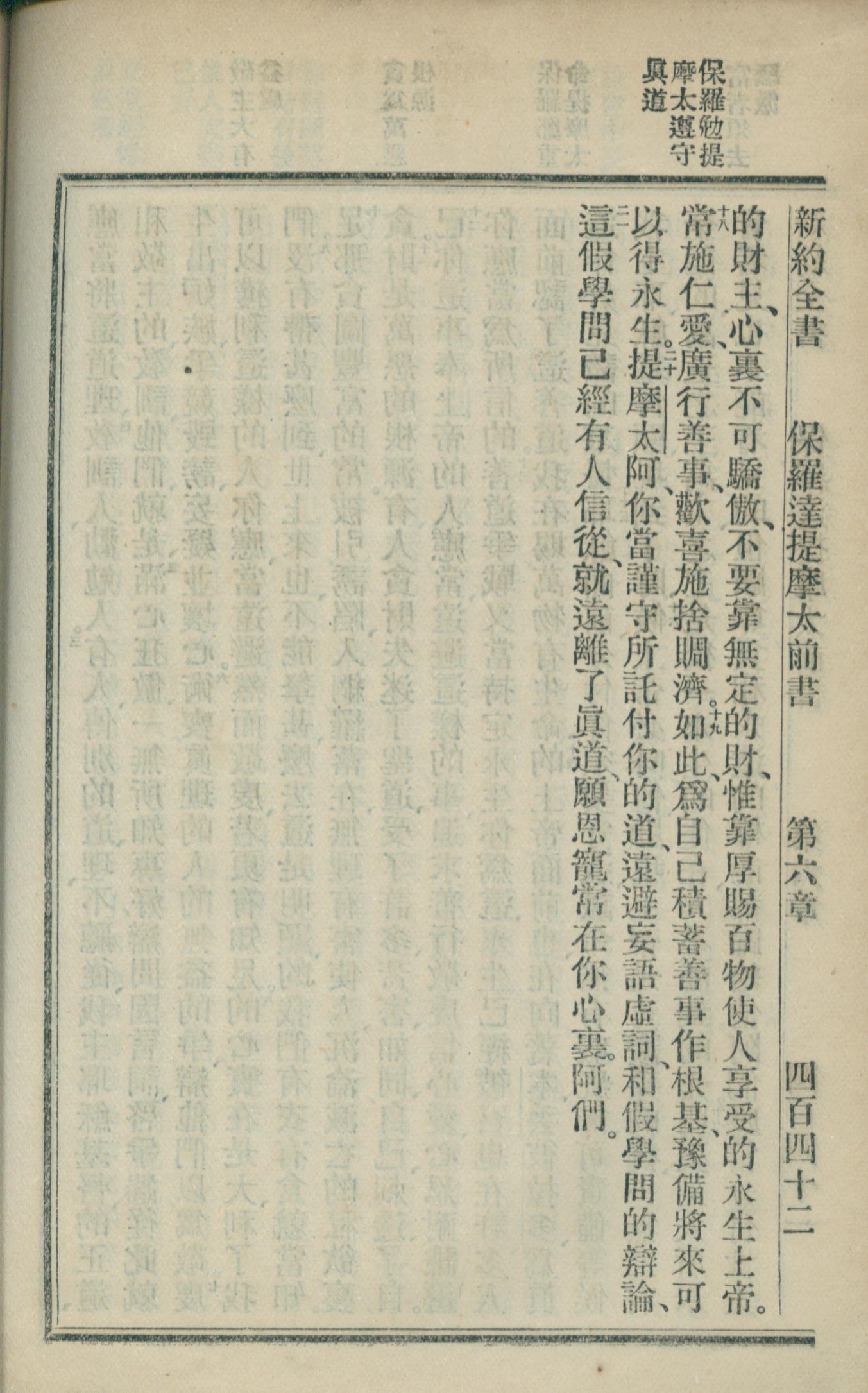 1902年新約全書 提摩太前書 6 章 17 節到 6 章 20 節