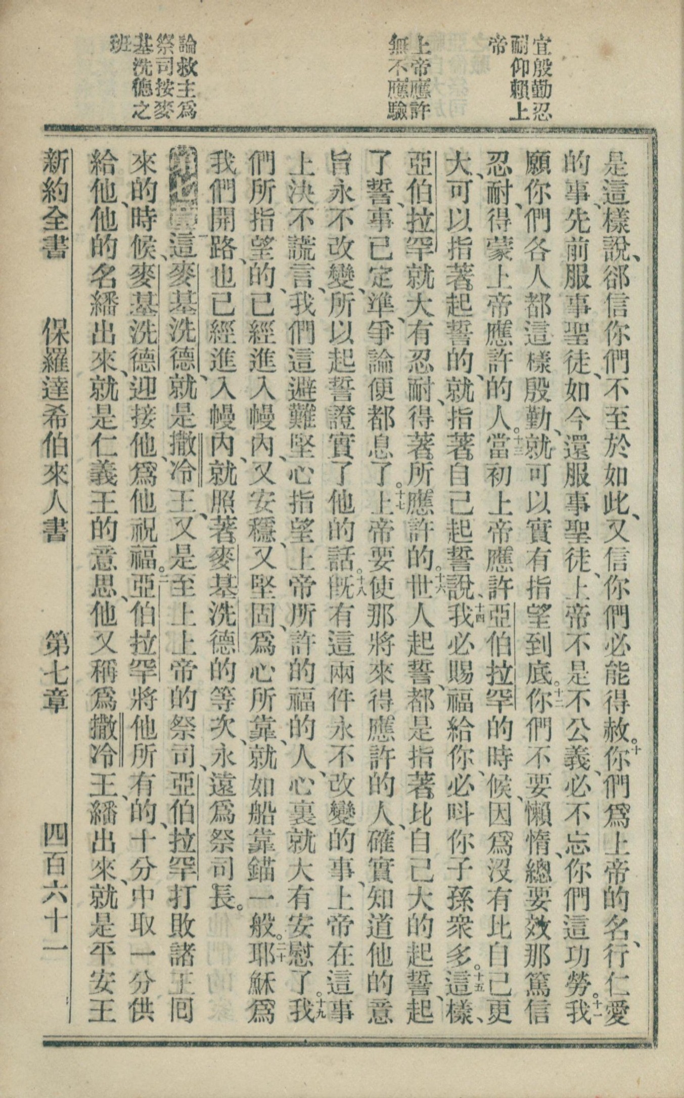 1902年新約全書 希伯來書 6 章 9 節到 7 章 2 節