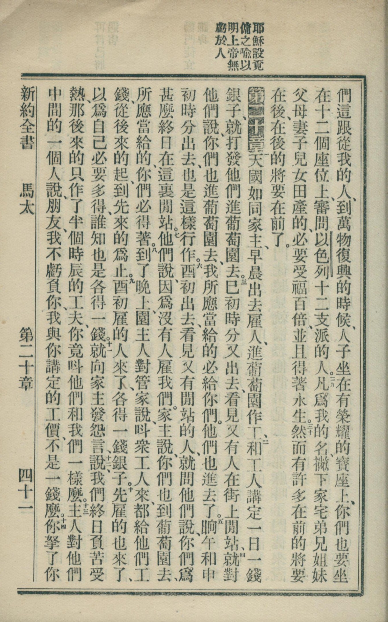 1902年新約全書 馬太福音 19 章 28 節到 20 章 13 節