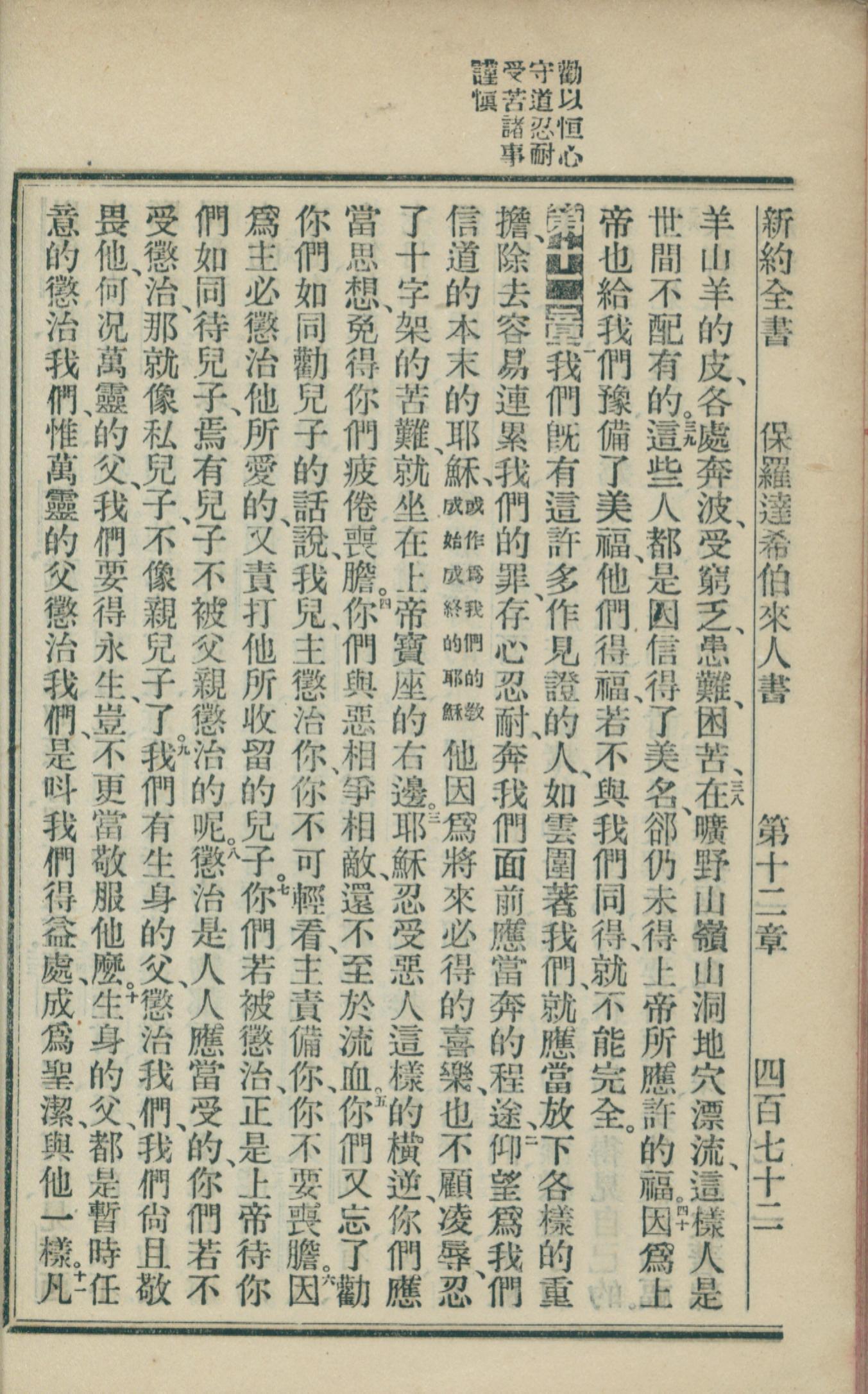1902年新約全書 希伯來書 11 章 38 節到 12 章 10 節