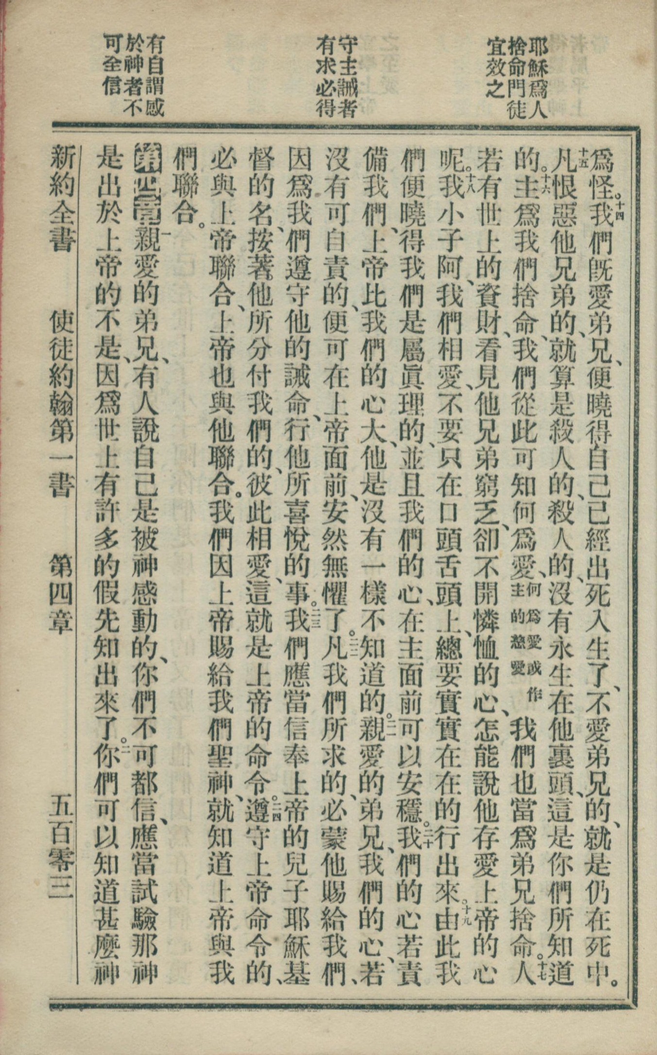 1902年新約全書 約翰一書 3 章 14 節到 4 章 2 節