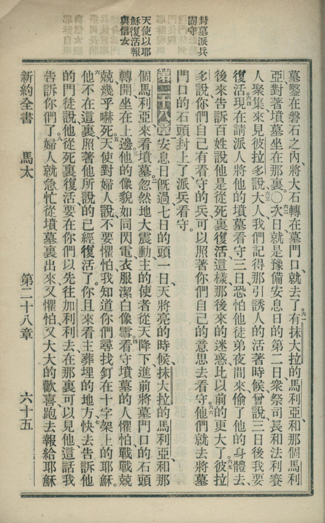 1902年新約全書 馬太福音 27 章 61 節到 28 章 8 節