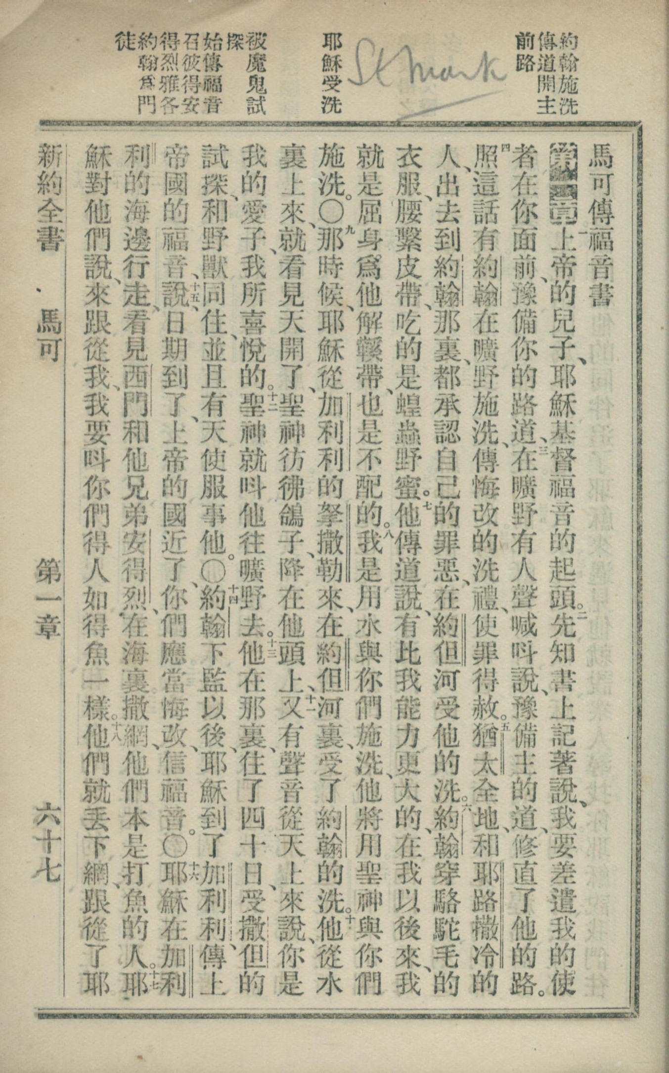 1902年新約全書 馬可福音 1 章 1 節到 1 章 18 節