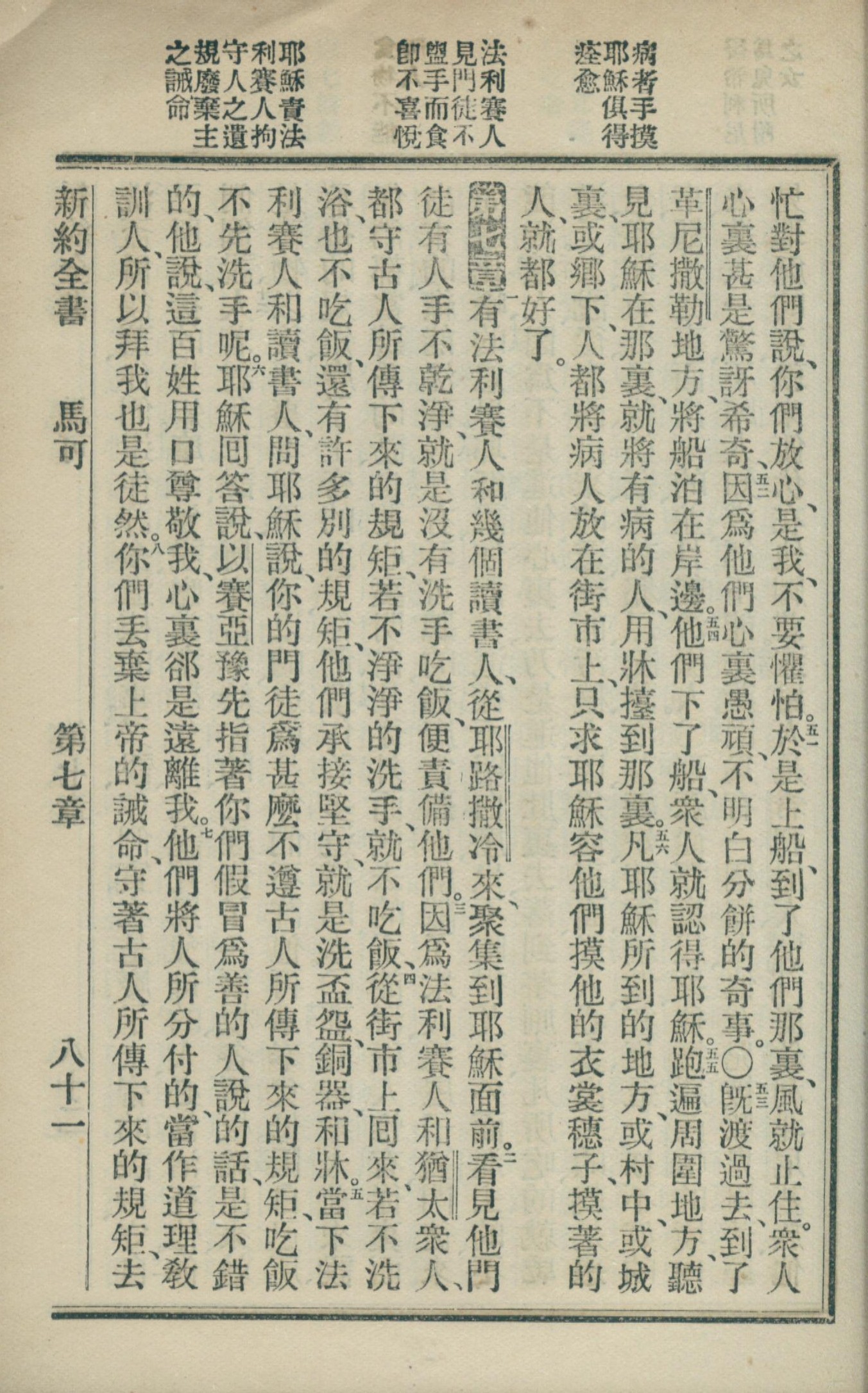 1902年新約全書 馬可福音 6 章 51 節到 7 章 8 節