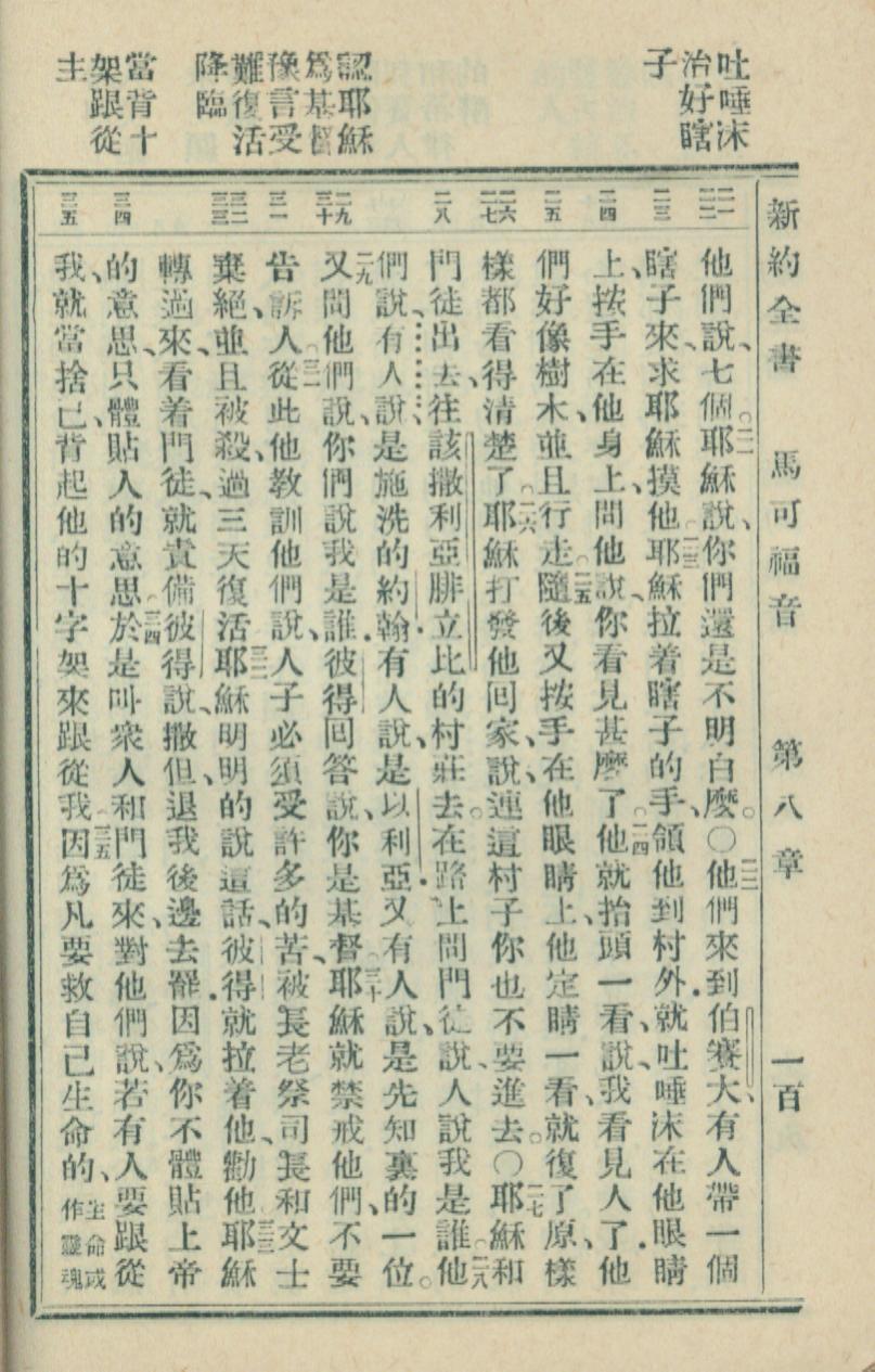 1936年新約全書 馬可福音 8 章 21 節到 8 章 35 節