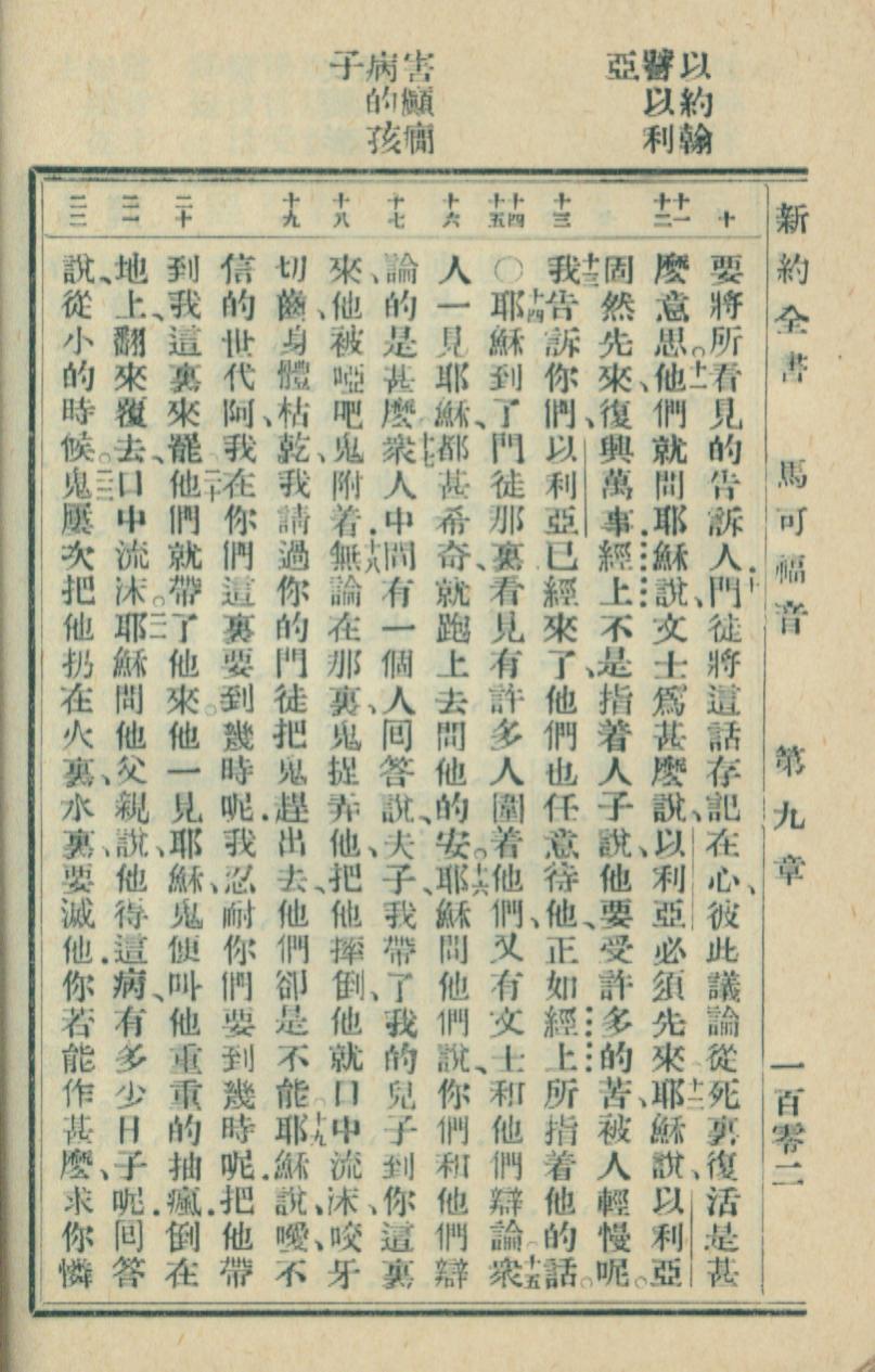 1936年新約全書 馬可福音 9 章 10 節到 9 章 22 節