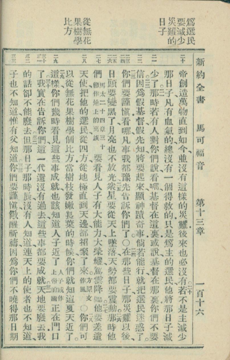 1936年新約全書 馬可福音 13 章 20 節到 13 章 23 節