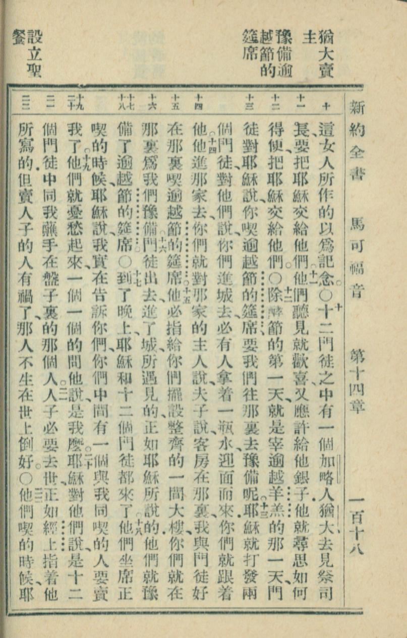 1936年新約全書 馬可福音 14 章 10 節到 14 章 22 節