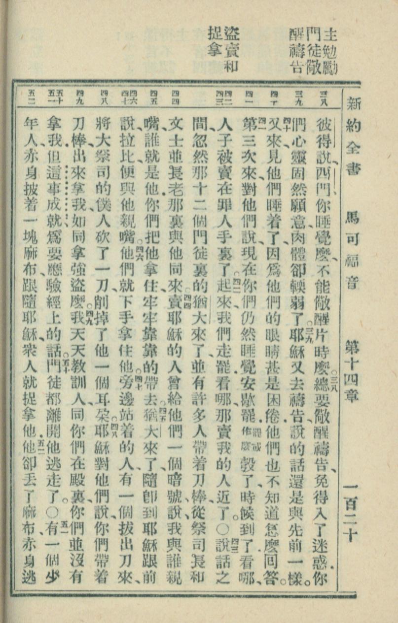1936年新約全書 馬可福音 14 章 38 節到 14 章 52 節