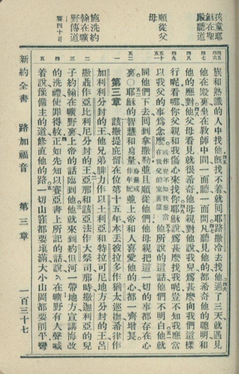 1936年新約全書 路加福音 2 章 45 節到 3 章 5 節