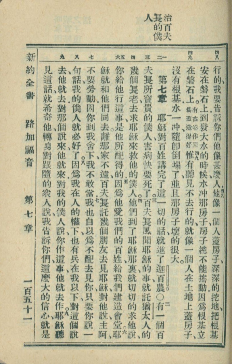 1936年新約全書 路加福音 6 章 48 節到 7 章 9 節