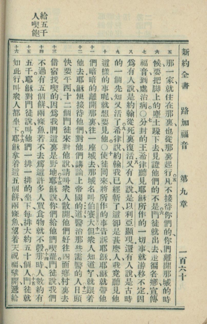1936年新約全書 路加福音 9 章 5 節到 9 章 16 節