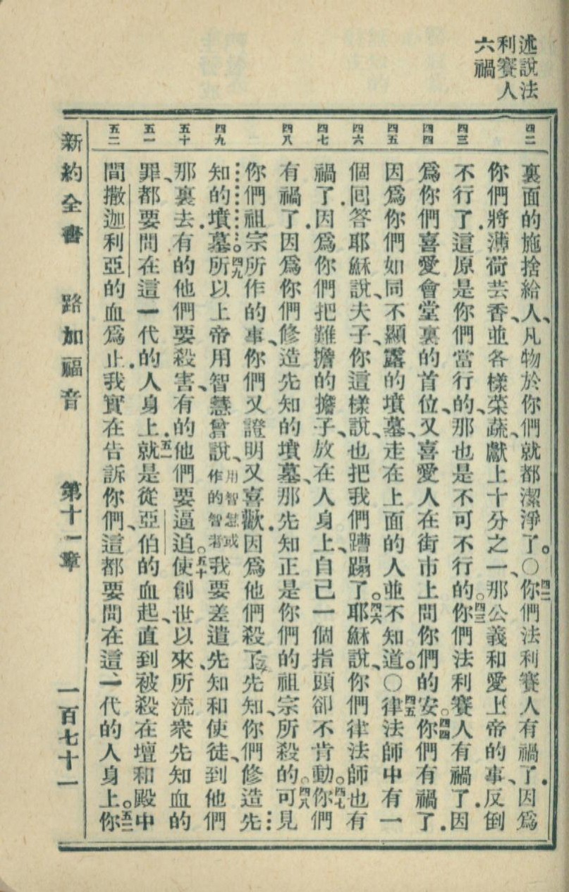 1936年新約全書 路加福音 11 章 42 節到 11 章 52 節