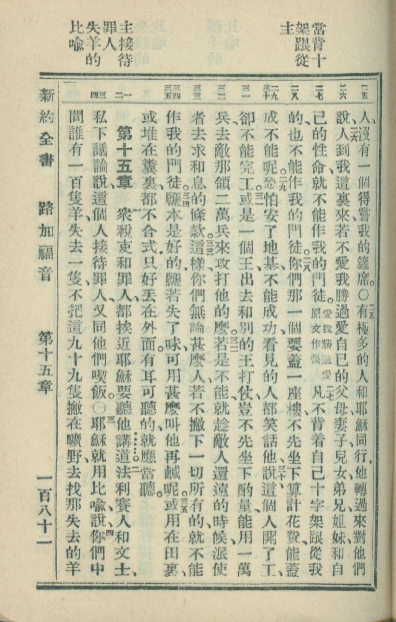 1936年新約全書 路加福音 14 章 25 節到 15 章 4 節