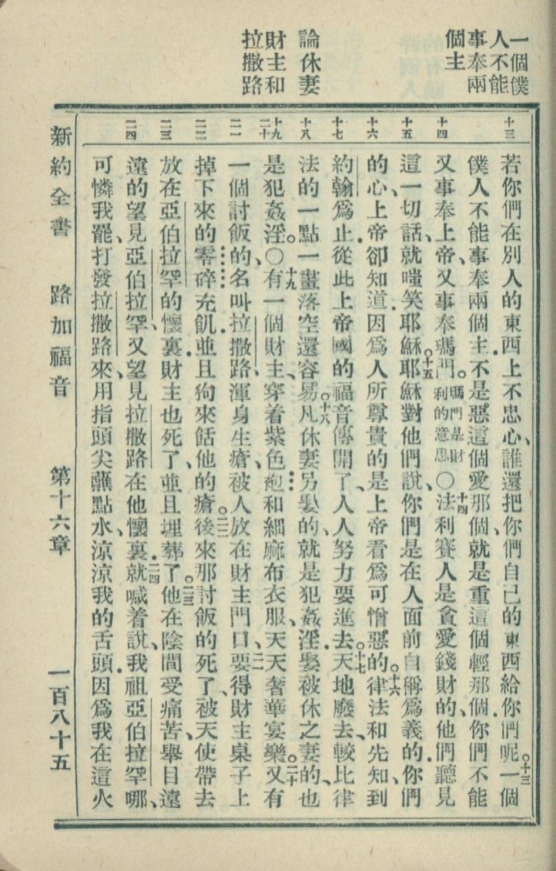 1936年新約全書 路加福音 16 章 13 節到 16 章 24 節