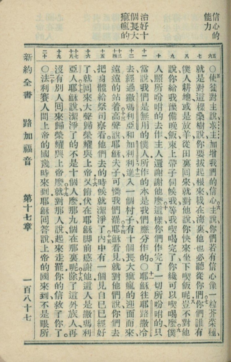 1936年新約全書 路加福音 17 章 5 節到 17 章 20 節