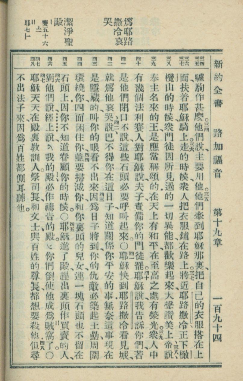 1936年新約全書 路加福音 19 章 34 節到 19 章 48 節