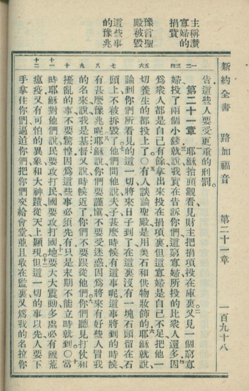 1936年新約全書 路加福音 21 章 1 節到 21 章 12 節