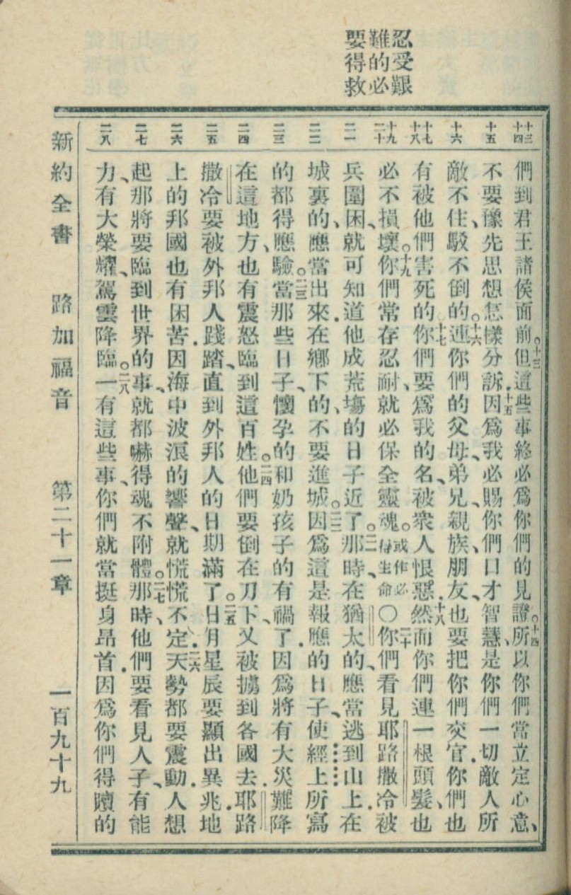1936年新約全書 路加福音 21 章 13 節到 21 章 28 節