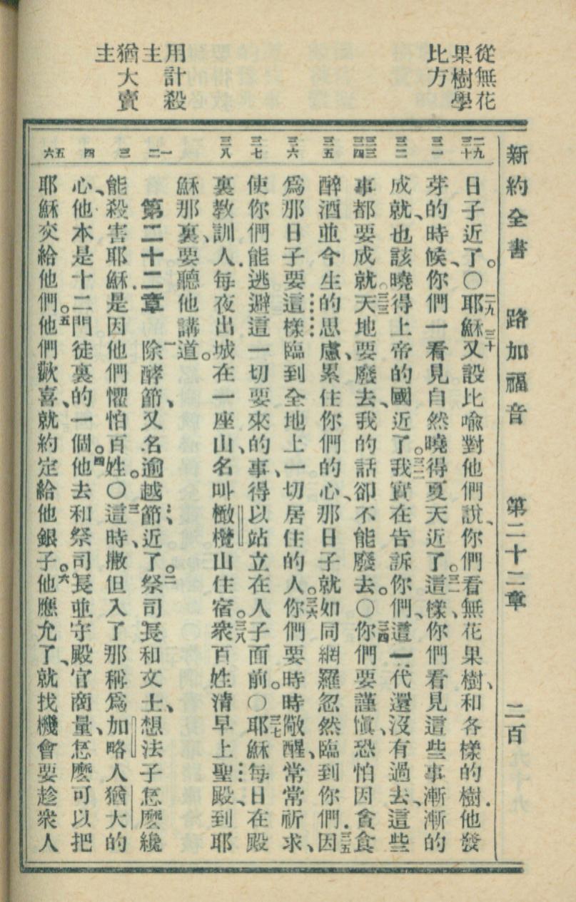 1936年新約全書 路加福音 21 章 29 節到 22 章 6 節
