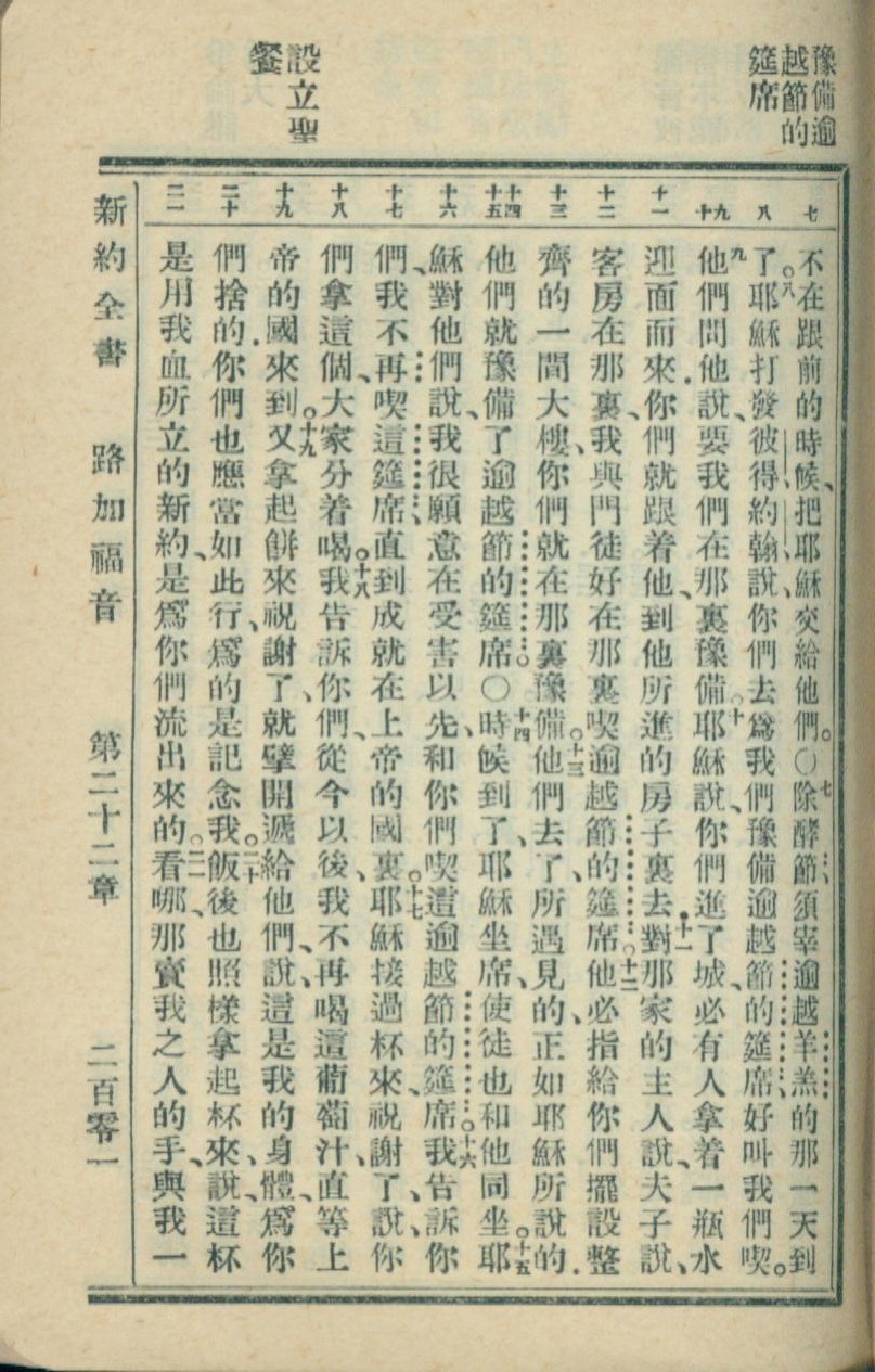 1936年新約全書 路加福音 22 章 7 節到 22 章 21 節