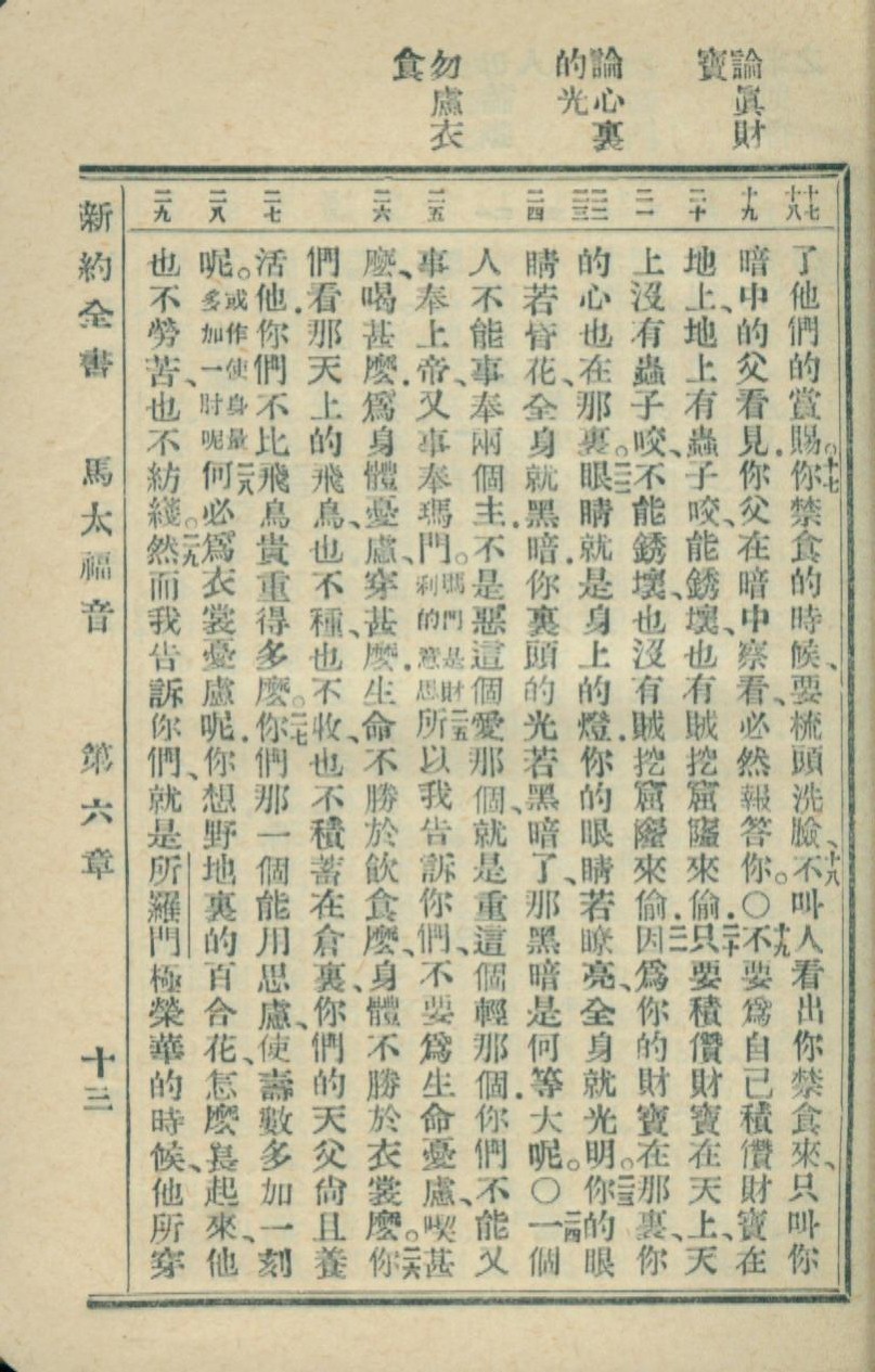 1936年新約全書 馬太福音 6 章 17 節到 6 章 29 節