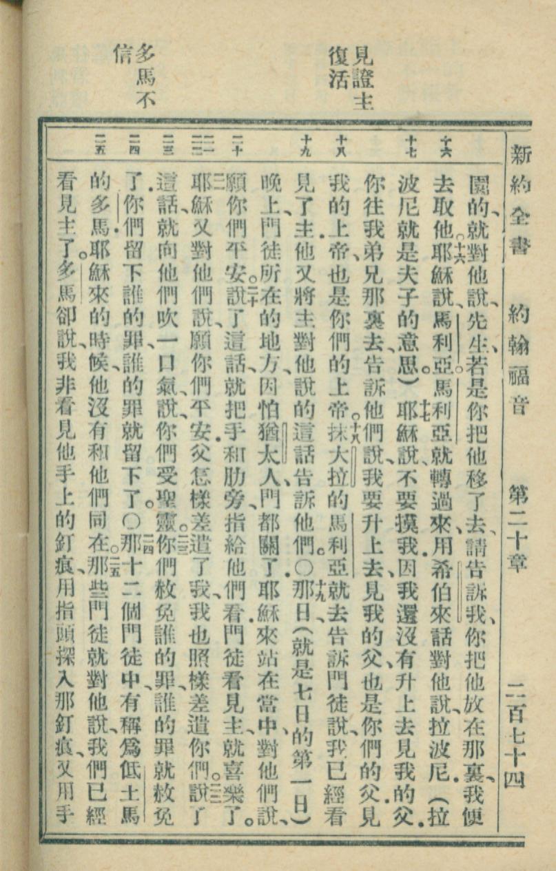 1936年新約全書 約翰福音 20 章 16 節到 20 章 25 節