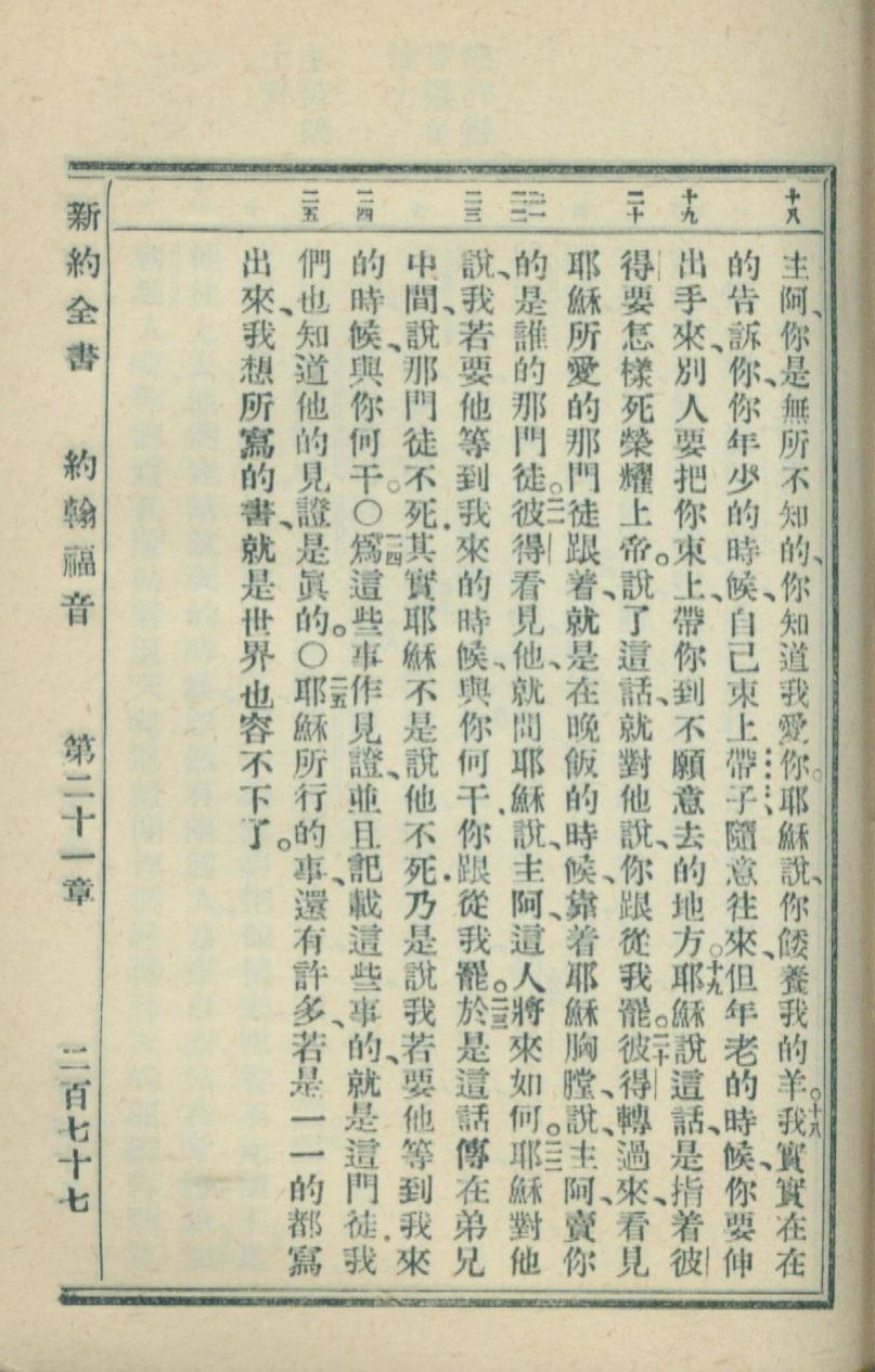 1936年新約全書 約翰福音 21 章 18 節到 21 章 25 節