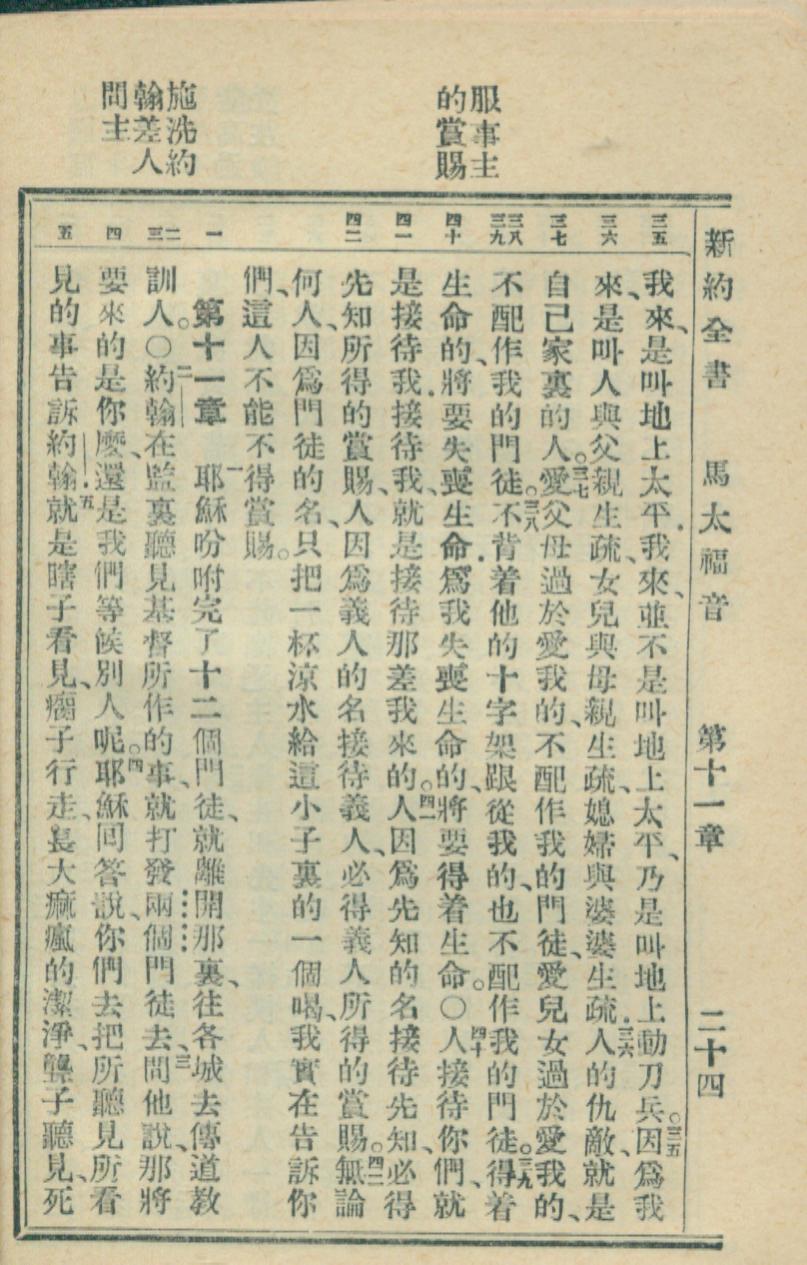 1936年新約全書 馬太福音 10 章 35 節到 11 章 5 節