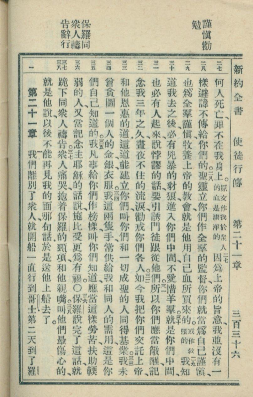 1936年新約全書 使徒行傳 20 章 27 節到 21 章 1 節