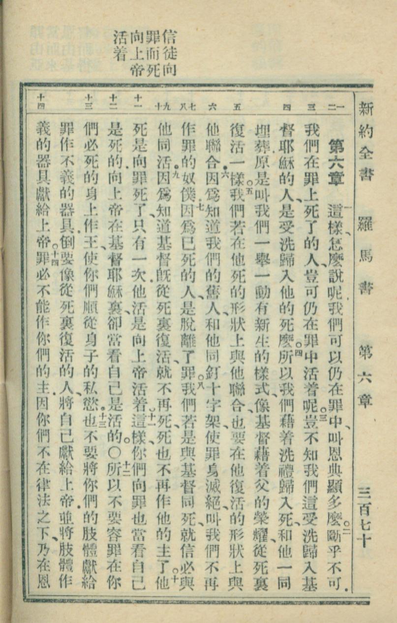 1936年新約全書 羅馬書 6 章 1 節到 6 章 14 節