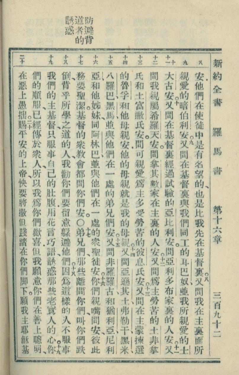 1936年新約全書 羅馬書 16 章 8 節到 16 章 20 節