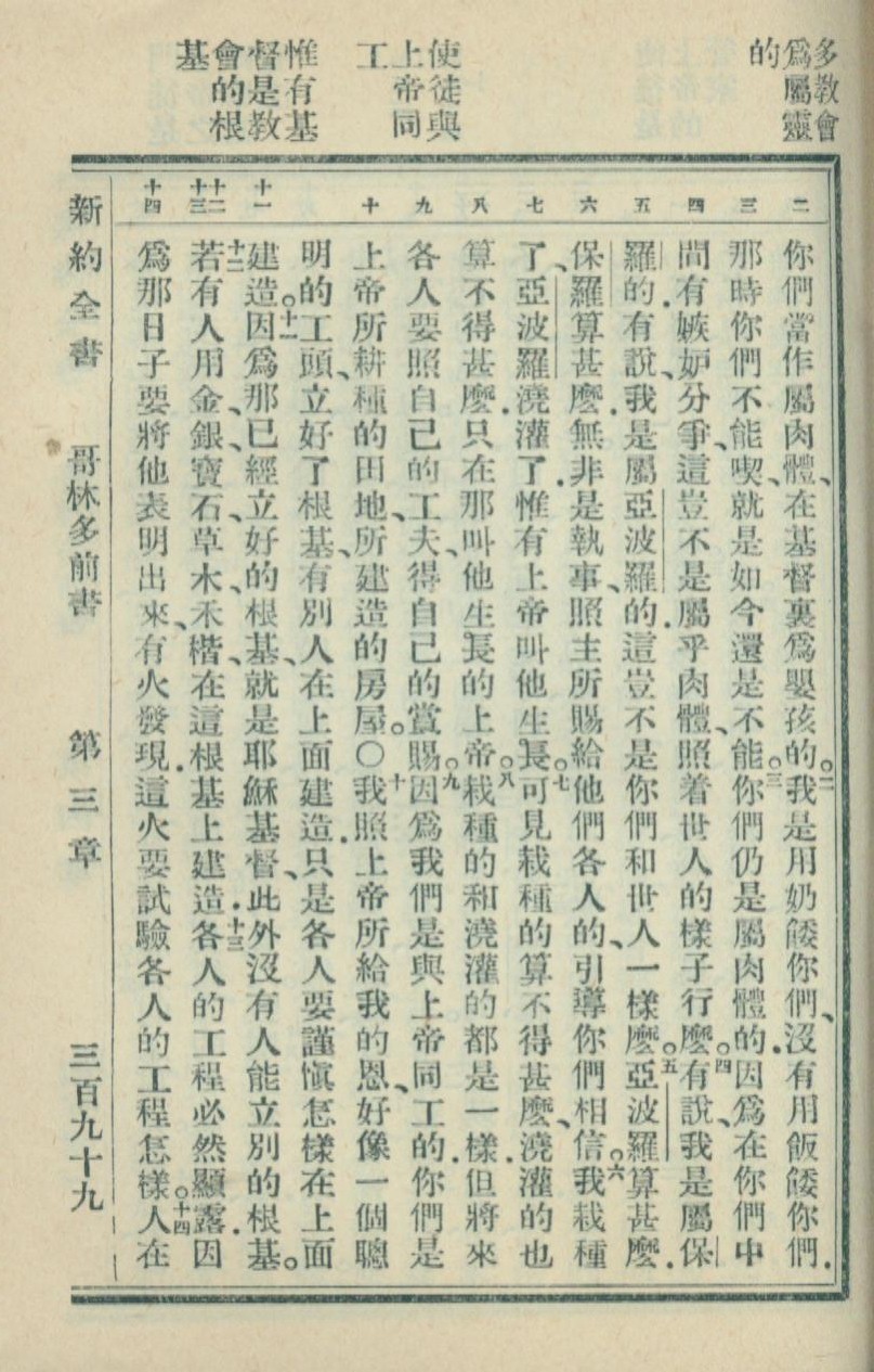 1936年新約全書 哥林多前書 3 章 2 節到 3 章 14 節